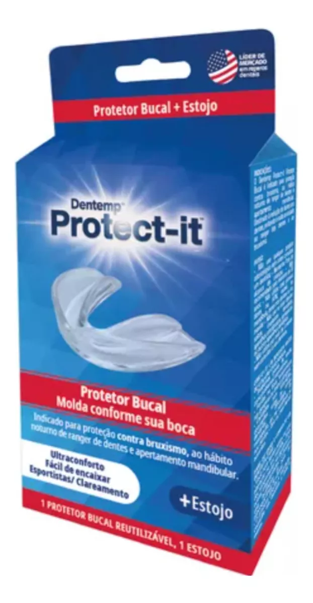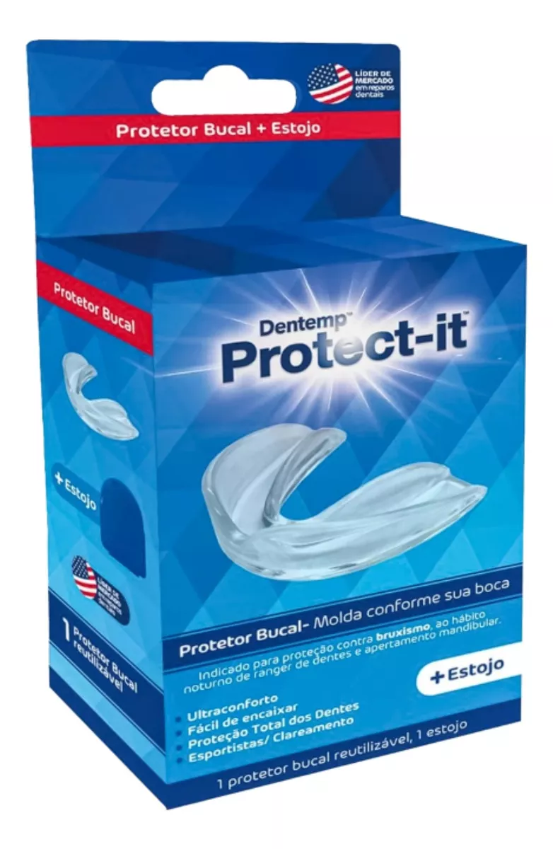 1 Protetor Bucal com estojo da marca Protect It que molda conforme sua boca.