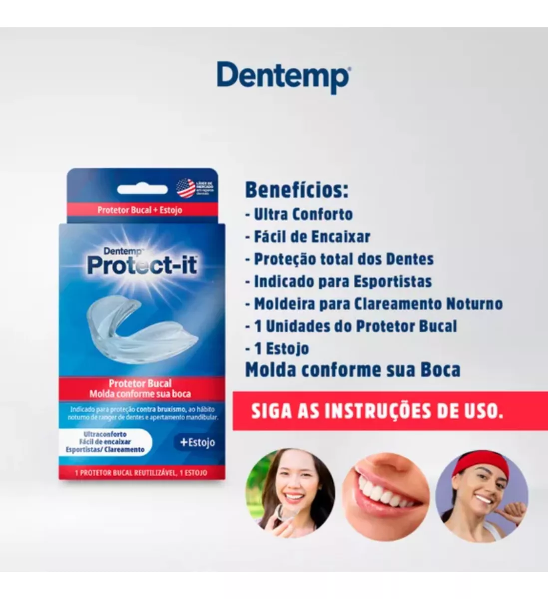 Protetor Bucal Anti-Bruxismo Protect It: Protege contra danos dentários, alivia dores musculares e articulares, previne problemas na ATM e melhora a qualidade do sono.